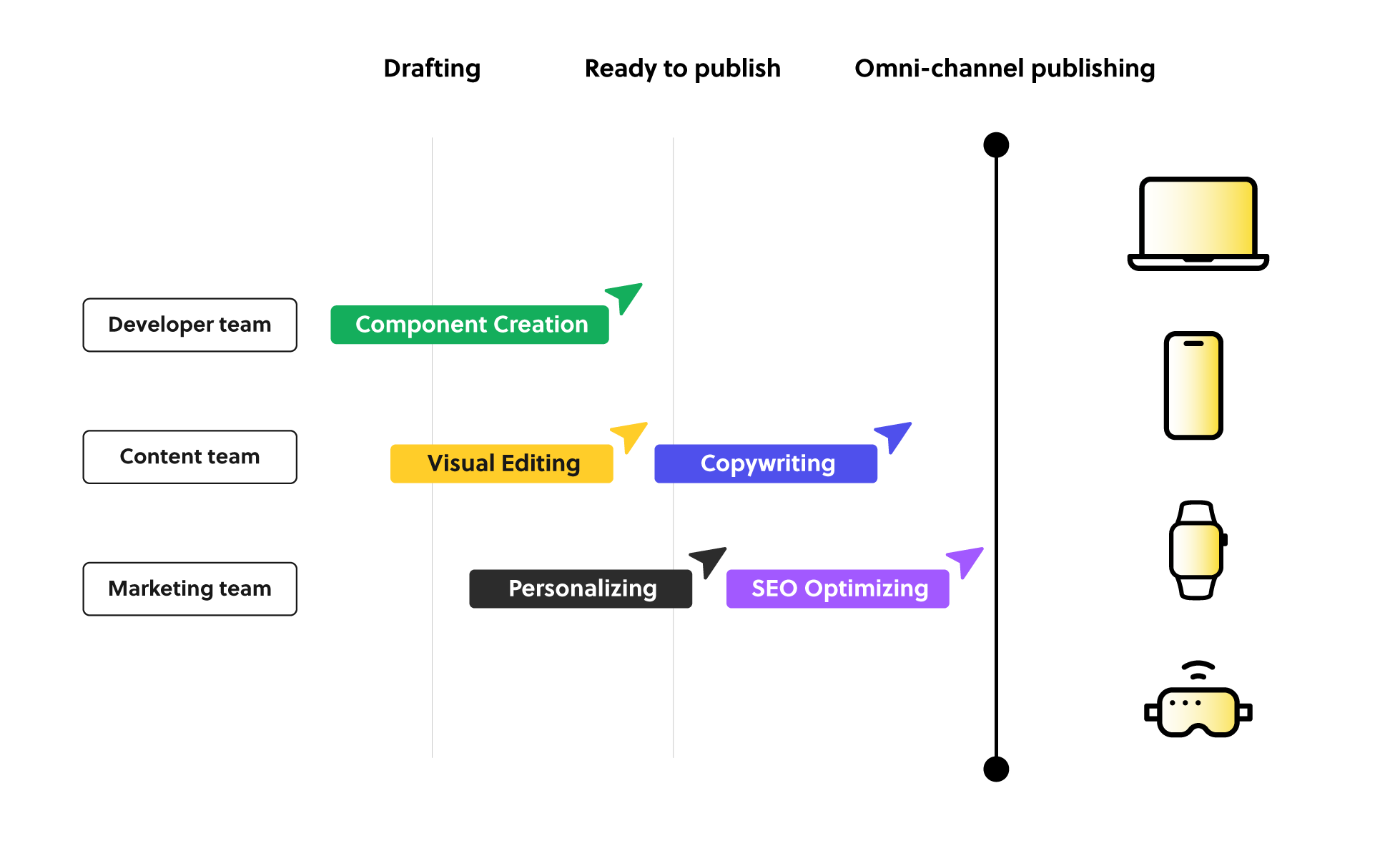 Ten CMS idealnie działa w zespołach, które łączą kompetencje w zakresie tworzenia i zarządzania zawartością oraz web development. Z tego powodu teraz przyjrzymy się, jak różne role w grupie mogą wykorzystać jego możliwości.