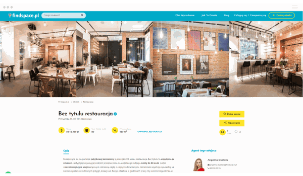 The new Findspace.pl website is not only visual corrections, it also includes new functionalities that we have introduced based on our experience and cooperation with clients. All this to simplify the advanced search of premises and automate the booking process.First of all, we've made online reservations - functionality that shortens the way to organizing an event by half. Thanks to the online booking option, the restaurant can organize twice as many events, without the need for each time contact with the customer asking for dates and prices. Thanks to the cooperation with Google Calendar, all dates and reservations in the restaurant synchronize automatically with the data that will be displayed to the client, and additional options such as hostesses, open bar, catering, etc. will allow you to adjust the event to the customer in the first phase of its organization.The premises finder has been equipped by us with additional filters of districts and categories of premises, thanks to which you can search for premises in selected areas and for concrete specifications, such as space, additional services, price, amenities. We have also implemented the addition of premises online - to add a new place to findspace.pl, you can use the extensive online form.What did we do?Coding the pageSEO optimizationGTM and GA - event analytics on the siteMarketing Automation