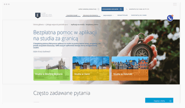 Bardzo duży projekt przygotowany dla fundacji świadczącej zarówno bezpłatną, jak i płatną pomoc przy aplikacji na studia zagraniczne. Elab jest liderem na rynku edukacyjnym na poziomie studiów za granicą. Najważniejsze było w projekcie czytelne pokazanie przekroju rozbudowanej oferty ELAB oraz uspójnienie analityki internetowej. Zaprogramowaliśmy layouty dostarczone nam przez klienta na zasadach pixel perfect używając preprocesora SCSS oraz korzystając z systemu kontroli wersji GIT. Dla podstron nieposiadających indywidualnych szablonów graficznych stworzyliśmy layouty zgodne z wyglądem strony. Zaprojektowaliśmy i zakodowaliśmy potężna wyszukiwarkę kierunków, których aktualnie jest ponad 8500. Wymagało to stworzenia praktycznie od zera archiwum WooCommerce, gdzie kierunki pogrupowane są według uniwersytetów. Jedną z najciekawszych funkcjonalności wyszukiwarki jest generator krótkich linków, pozwalający na zapisanie wybranych przez użytkownika kierunków. Dodatkowo wykonaliśmy konfigurację i integrację z ScheduleOnce oraz Salesforce.